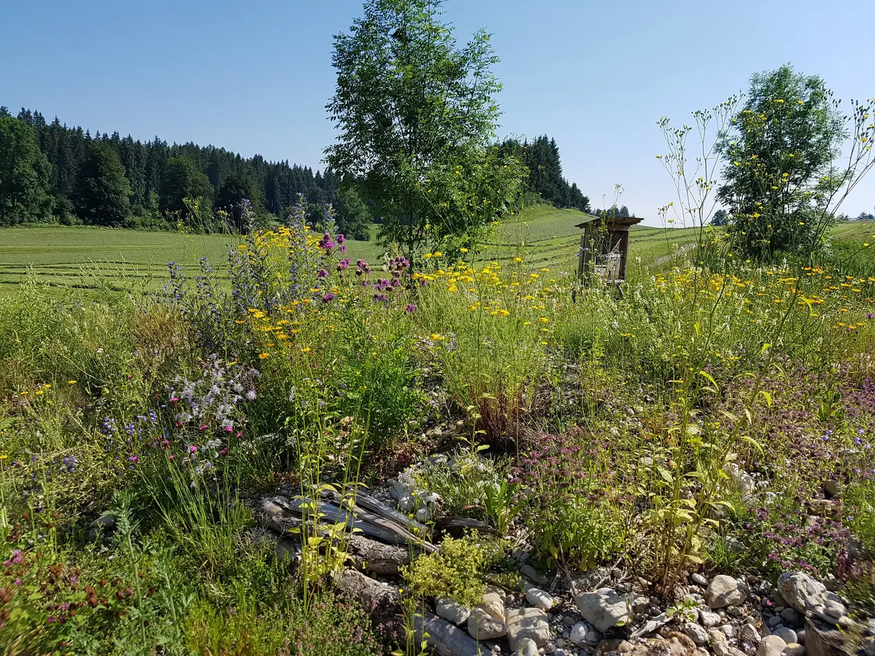 - Anlage von Blüh- und Magerrasenflächen und Eidechsenbiotopen im Weihergut