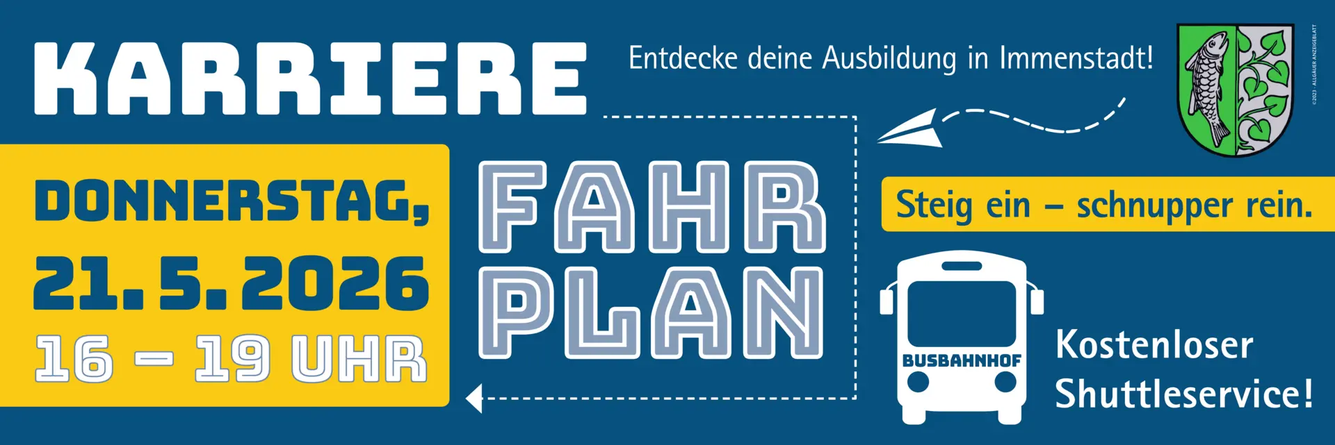 Dein Weg zur AusbildungDu suchst eine Ausbildung und willst Unternehmen in Immenstadt kennenlernen? Dann komm am Donnerstag, 21. Mai 2026 zu uns nach Immenstadt!