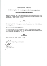 1. Änderung zur Zweitwohnungssteuersatzung vom 24.11.2022Satzung zur 1. Änderung der Satzung über die Erhebung einer Zweitwohnungssteuer in der Stadt Immenstadt i. Allgäu (Gültig ab 30.03.2026)pdf 309 KB